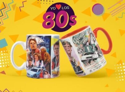 Los salones recreativos con sus máquinas arcade y los letreros de neón eran lugares emblemáticos de los 80’s. Un diseño de taza con imágenes de juegos arcade o un letrero de neón retro es una forma de llevar esa atmósfera a tu día a día.